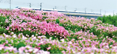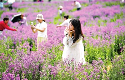 搭客在汉江湾花田花海留影。