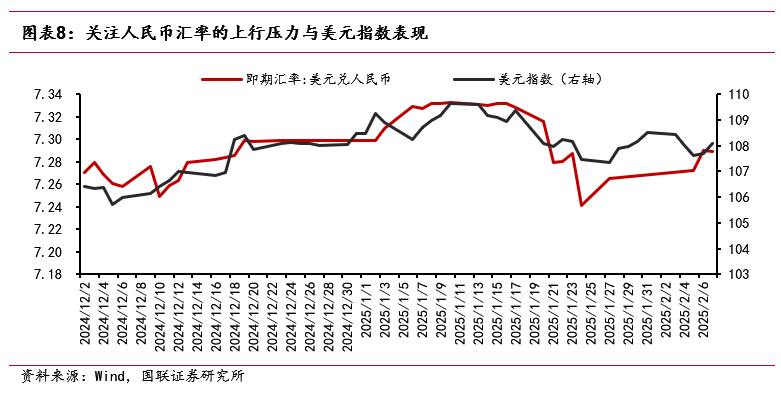 商业摩擦加重对汇率的冲击可能影响央行短期关于货币战术的倾向,需眷注摩擦进一步升级的可能,以及是否对好意思元-东说念主民币汇率带来更多扰动。2月1日,好意思国告示了对华加征10%关税的商业战术;2月4日,中国告示自2月10日起对自好意思国入口的部分商品差异加征10%-15%的关税,进行部分物项出口管理,并履行将两家好意思国公司列入不行靠清单、对好意思国公司伸开反驾御访问等举措。详尽而言,好意思国加征关税战术可能令国内出口有所承压。节后好意思元对东说念主民币汇率再度呈现震憾回升趋势,若有新的外部事件影响,央行或将愈加喜欢汇率波动的搪塞,货币宽松节律有放缓可能;但汇率战术或更倾向于逢迎市集记忆合理预期,谨防超调风险,始终货币战术要点仍将在汇率波幅持重后记忆里面战术。